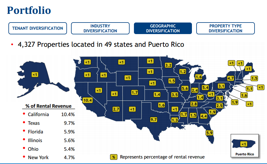 Su modelo de negocio se basa en una gran diversificación, y en buscar inquilinos con una buena calificación crediticia, de hecho el 54% de sus inquilinos tienen Investment grade.
