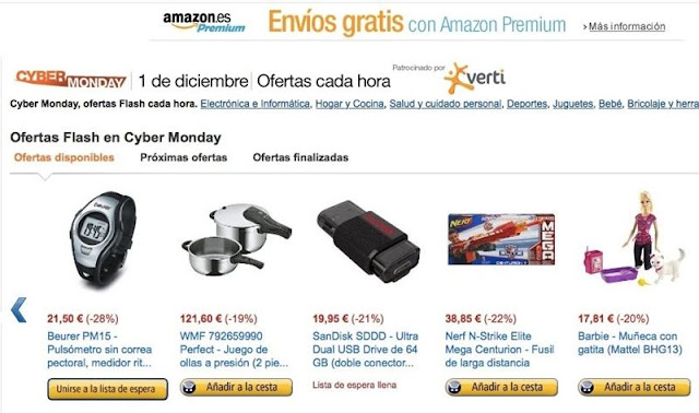En el caso de amazon, tanto en el blackfriday como en el cibermonday el formato que suelen usar nos facilita la labor, ya que son las llamadas ventas flash: