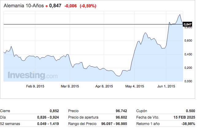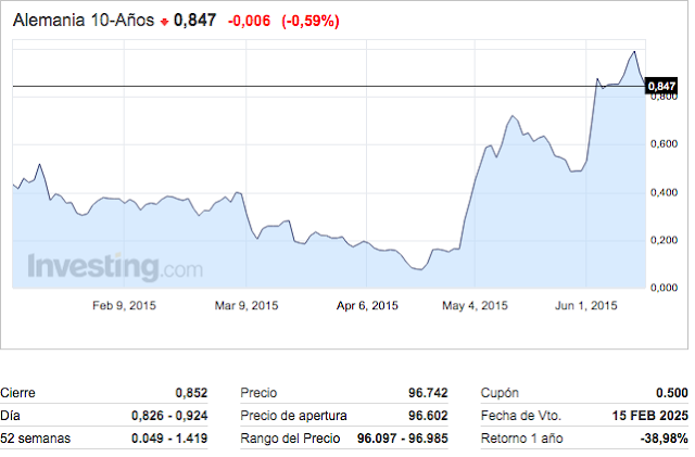 La renta fija sigue su tendencia imparable, y eso puede tener efectos sobre los tipos USA que ya pueden no necesitar esperar para poder subir sin llevar el tipo de cambio a la paridad no deseado por la FED. Vemos la evolución del bund alemán a 10 años: