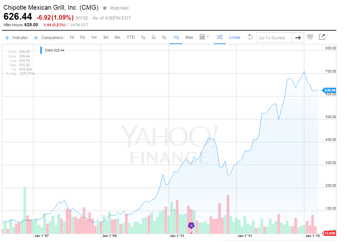 La segunda, es ver cómo ha ido su evolución en bolsa desde que hablamos de ella por primera vez, y ver si realmente podríamos compararlo con la que tuvo Chipotle (CMG) en su momento, y la que ha tenido Mcdonalds desde entonces.