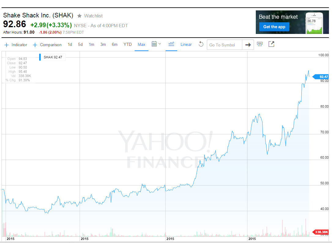 Varias veces en los últimos meses os he hablado de Shake Shack(SHAK), la primera fue el 2 de febrero en esta entrada cuando os presenté la empresa por su reciente y exitosa OPV, y hablaba de seguir el modelo de Chipotle (CMG).