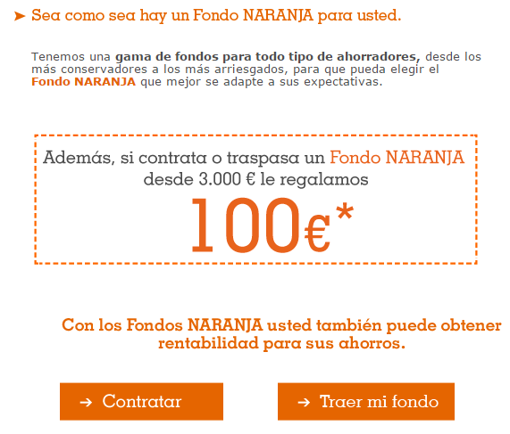 Hace unos días, en esta entrada os hablé de la promoción de 100€ brutos que ING Direct tenía únicamente en su web antigua, bien, seguramente los que no tenéis contratado aún un expediente de fondos, ya habréis recibido un mailing con la promoción, al menos yo si lo he recibido: