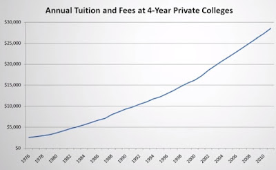 Y lo mismo ha sucedido con el coste anual de estudiar una carrera en USA, esa facilidad de endeudamiento ha llevado a las universidades a disparar los precios:
